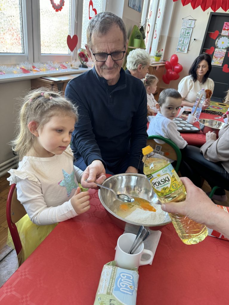 Dnia 14 lutego grupa Stokrotki przygotowała przedstawienie oraz warsztaty kulinarne z okazji Dnia Babci i Dziadka. Podczas warsztatów przedszkolaki wykonały wspólnie z dziadkami przepyszne babeczki