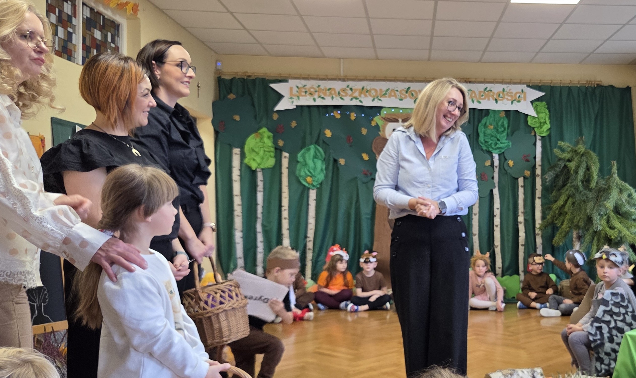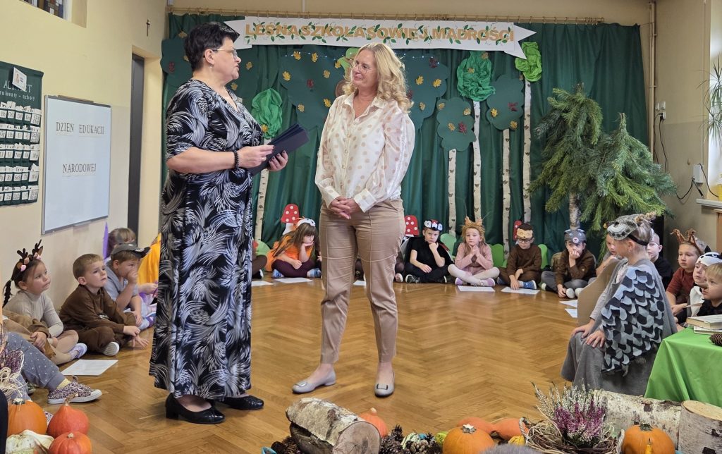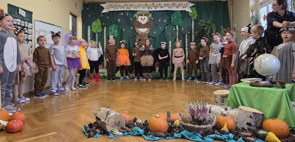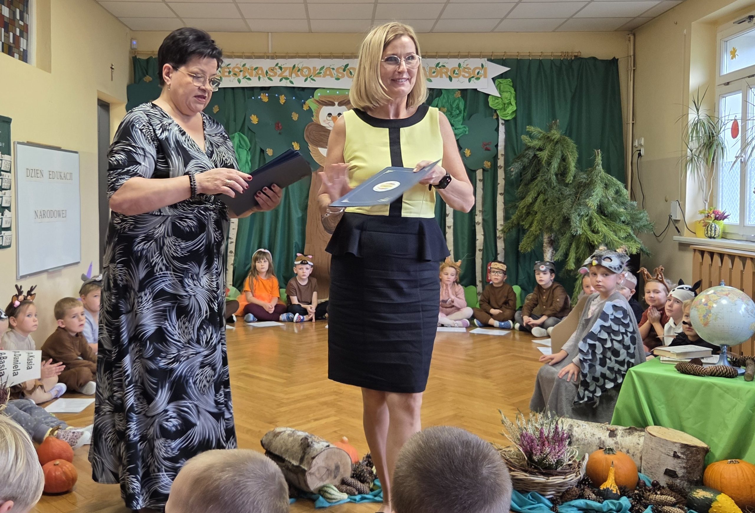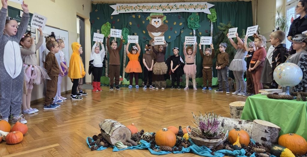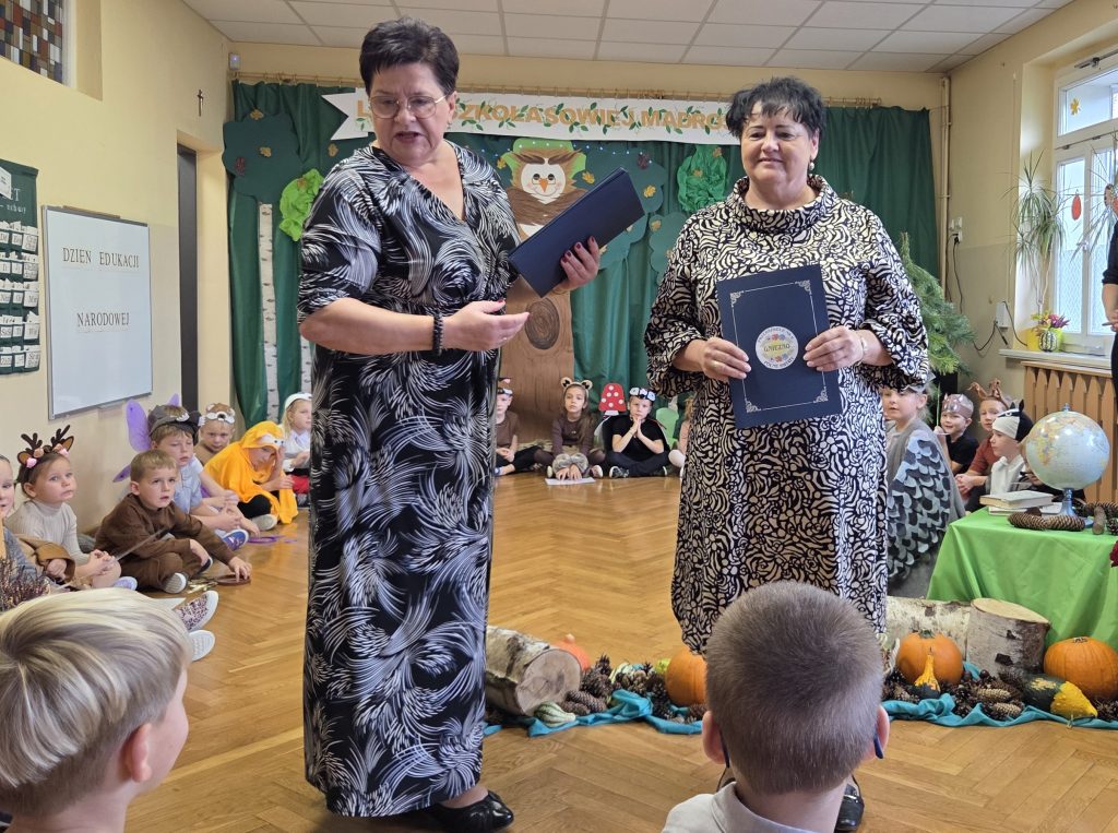 I właśnie z tej okazji 14 października cała społeczność przedszkolna spotkała się na uroczystej akademii. Przygotowały ją dzieci z grupy „Bratki” pod kierunkiem Pani Natalki i Pani Iwonki, które przygotowały również przepiękną dekorację dla „Leśnej szkoły sowiej mądrości”. Dzieci pięknym przedstawieniem wyraziły swoje podziękowanie za serce, uśmiech i każdą chwilę poświęconą małym wychowankom. Pani Dyrektor wręczyła nagrody wyróżniającym się nauczycielom i pracownikom przedszkola, szczególnie tym, którzy już kończą swoją przygodę z pracą na rzecz najmłodszego pokolenia. . Podziękowała również za trud wkładany w wychowanie i kształcenie dzieci życząc jednocześnie satysfakcji i radości z wykonywanej pracy, a także dalszych sukcesów w życiu prywatnym na zasłużonych wkrótce emeryturach.