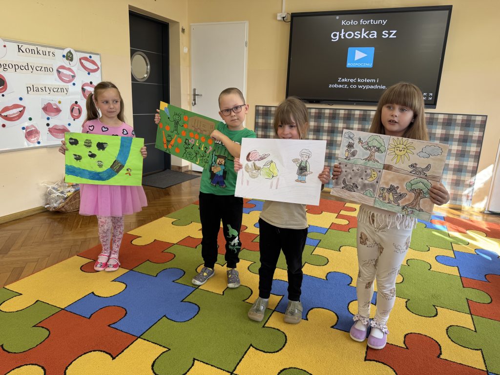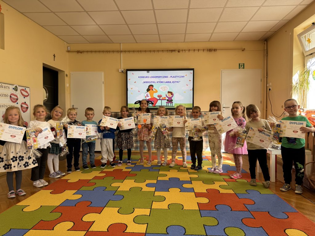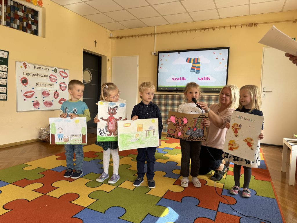 29 września w naszym przedszkolu odbył się konkurs logopedyczno – plastyczny: „Wierszyki, które łamią języki”, adresowany do dzieci 5,6 – letnich. Dzieci z grup: Bławatki, Bratki i Niezapominajki wzięły udział w różnych zabawach logopedycznych: rozwiązywały zagadki logopedyczne, wzięły udział w zabawach słuchowych, różnicowały głoski w wyrazach, wykonywały ćwiczenia artykulacyjne, dźwiękonaśladowcze. Z każdej grupy chętne dzieci wykonywały różne zadania.