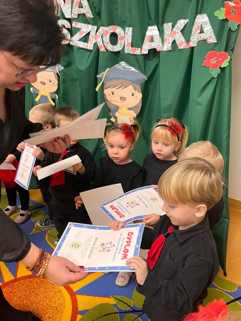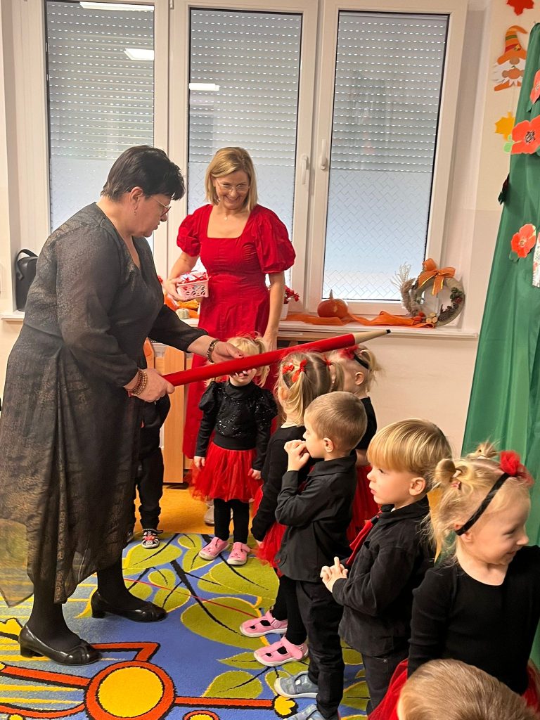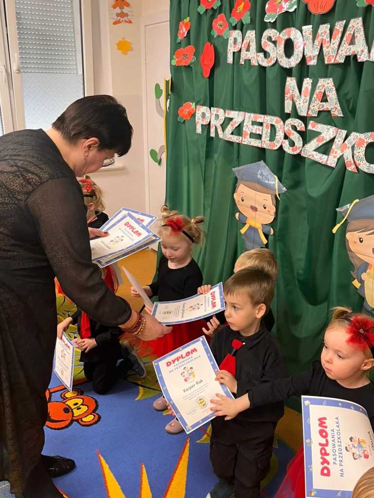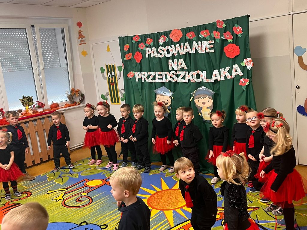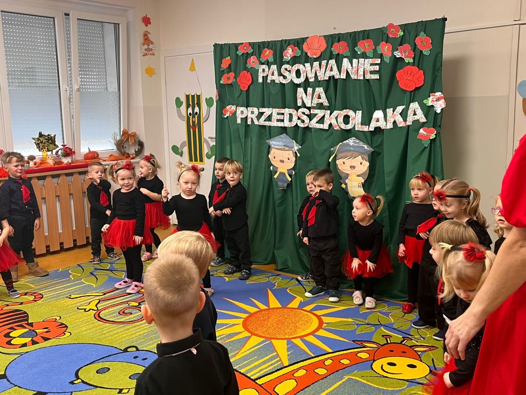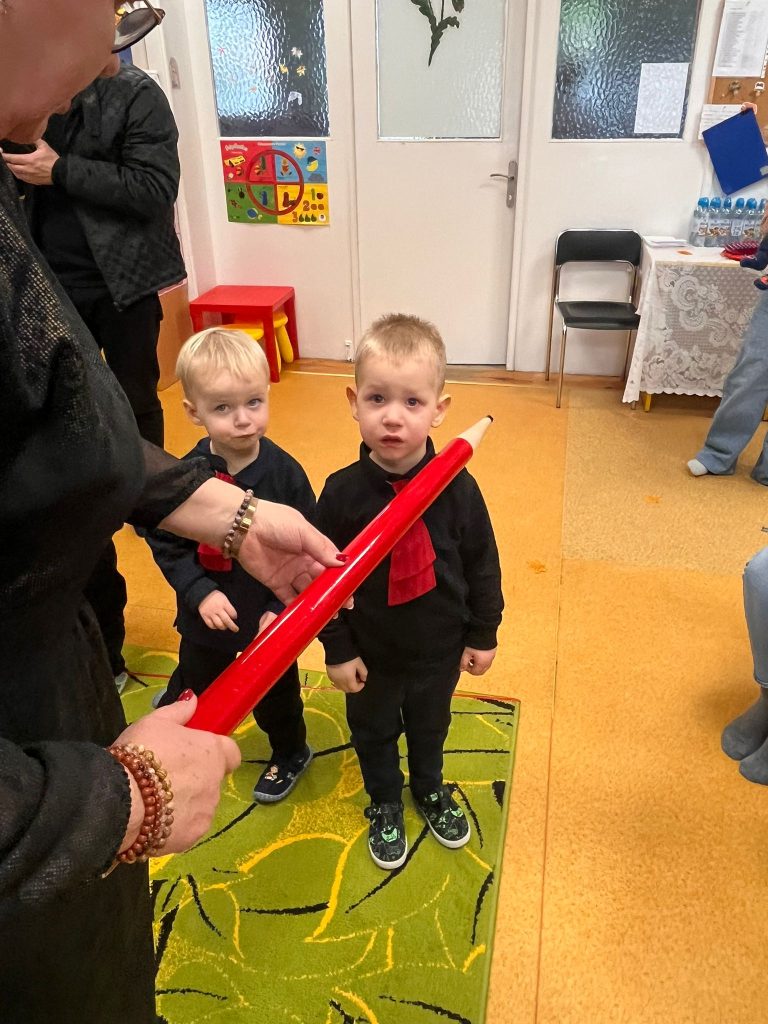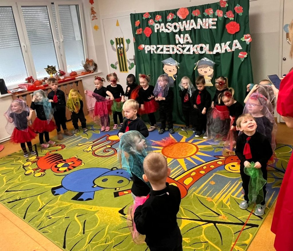 Dziś w naszym przedszkolu odbyła się uroczysta ceremonia Pasowania na Przedszkolaka. To wyjątkowy moment, w którym najmłodsze dzieci z grupy „Maki” oficjalnie dołączyły do grona prawdziwych przedszkolaków. Podczas wydarzenia maluchy zaprezentowały wierszyki, piosenki, tańce pokazując, jak wiele już potrafią. Następnie złożyły uroczyste przyrzeczenie, że będą wesołymi, dzielnymi i koleżeńskimi przedszkolakami. Kulminacyjnym punktem uroczystości było symboliczne pasowanie – dotknięcie ramienia „czarodziejskim ołówkiem” przez Panią Dyrektor. Każde dziecko otrzymało pamiątkowy dyplom, medal oraz drobny upominek. To był dzień pełen emocji, uśmiechów i radości. Gratulujemy wszystkim nowym przedszkolakom i życzymy im wielu wspaniałych chwil w naszym przedszkolu!