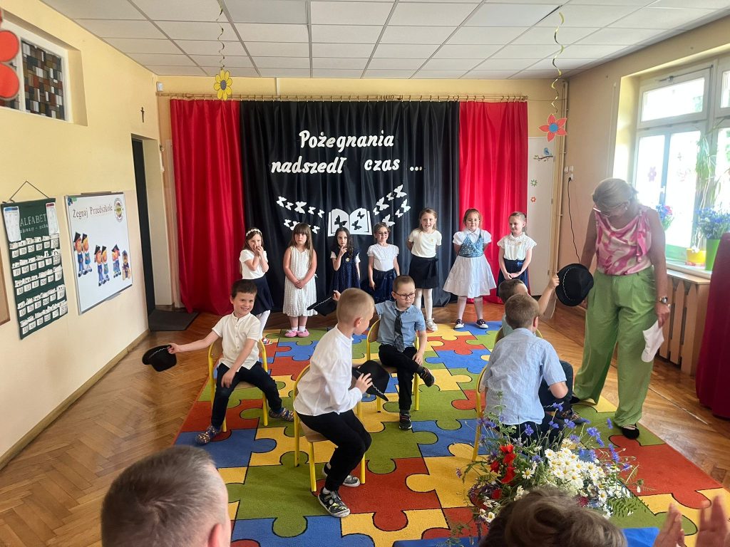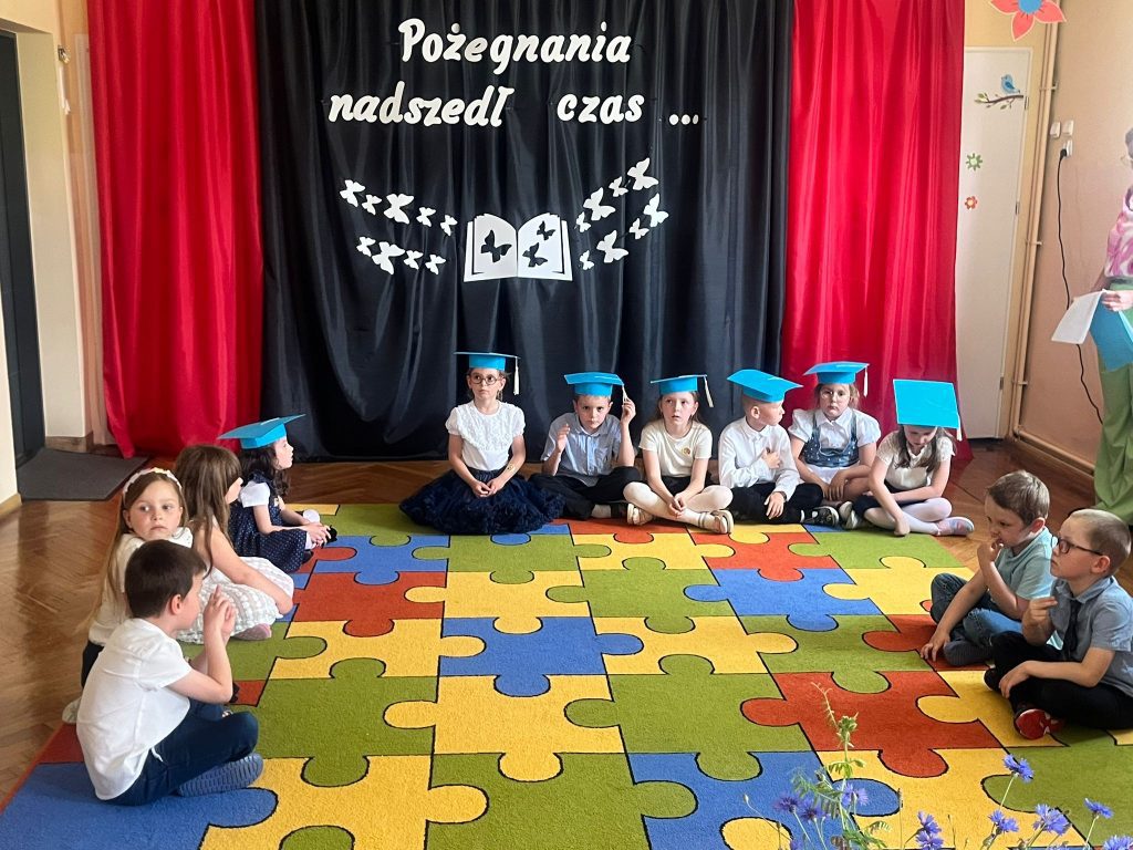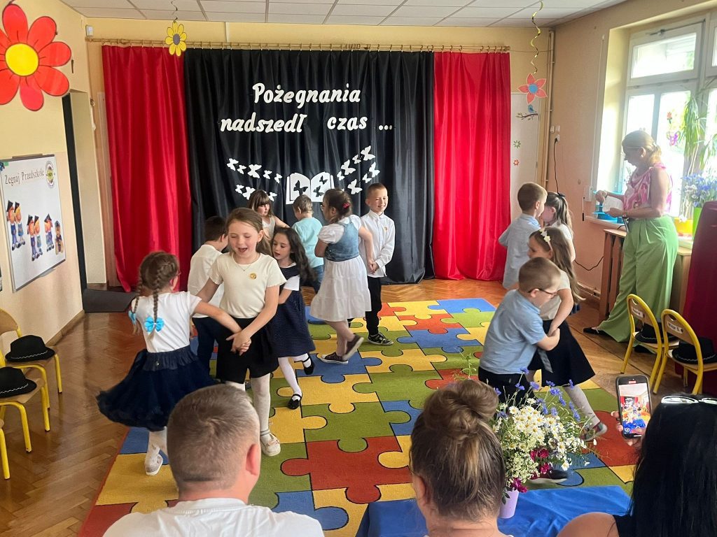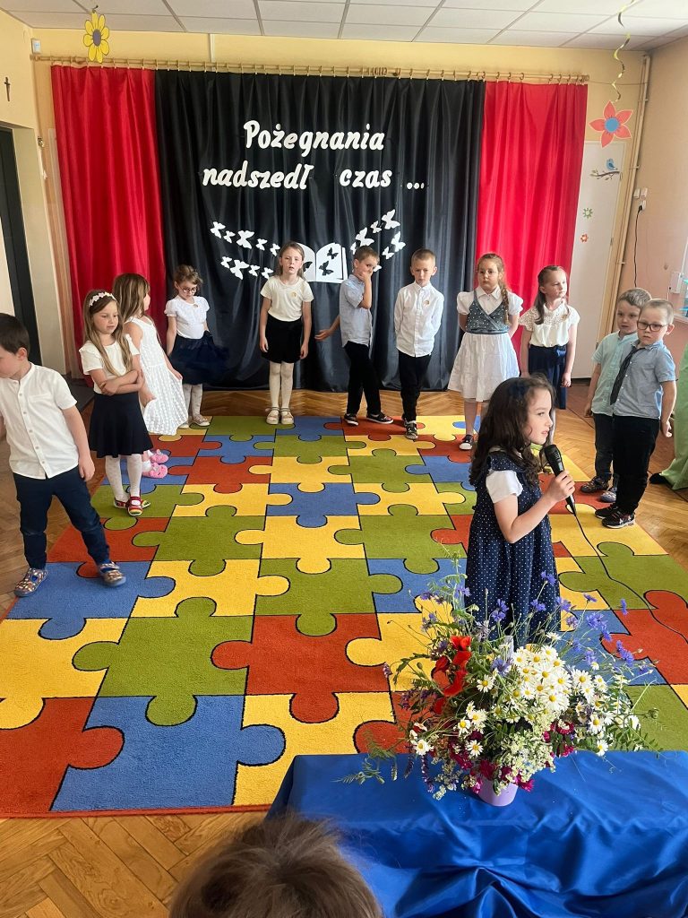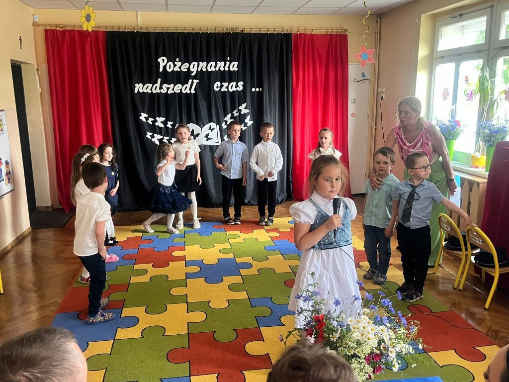 18 czerwca 2025 roku grupa Niezapominajki uroczyście pożegnała przedszkole. Był to wyjątkowy dzień —radości i pięknych wspomnień. Siedmioro naszych dzielnych przedszkolaków zakończyło swoją przedszkolną przygodę i wyrusza teraz w szkolną drogę. Wspólnie pożegnaliśmy ten ważny etap — z dumą, wdzięcznością i mnóstwem emocji. Gratulujemy naszym małym artystom pięknych występów — było „(…) dużo uśmiechów i trochę łez, bo w życiu już tak jest, coś się kończy, coś się zaczyna (…)”.