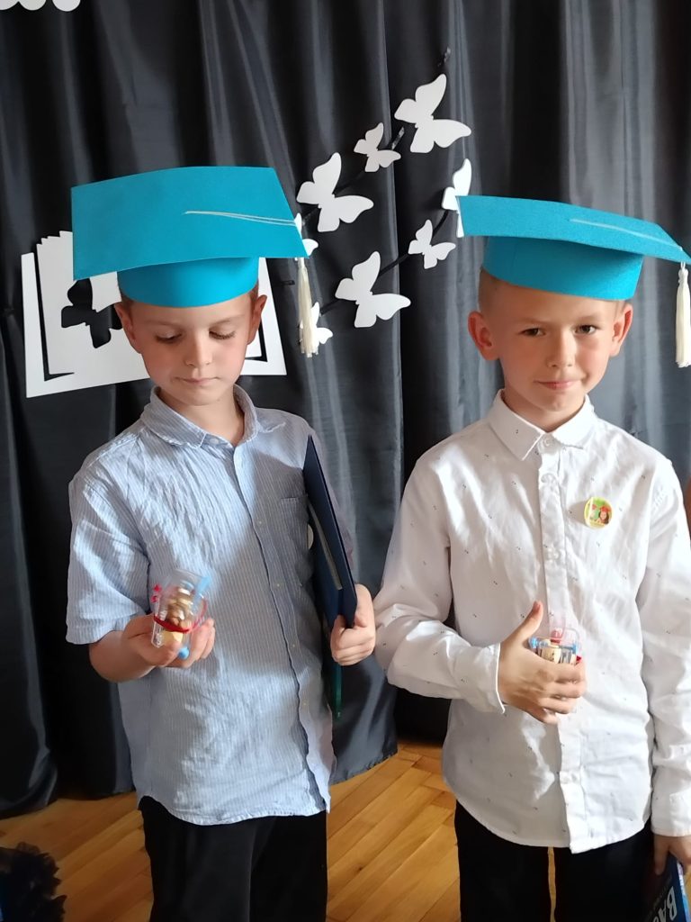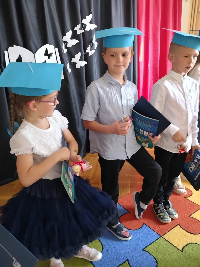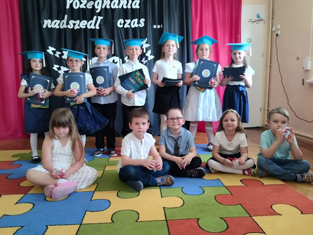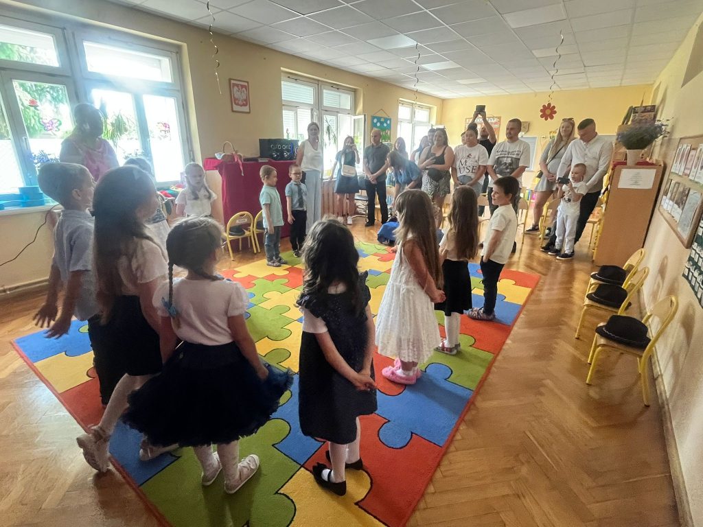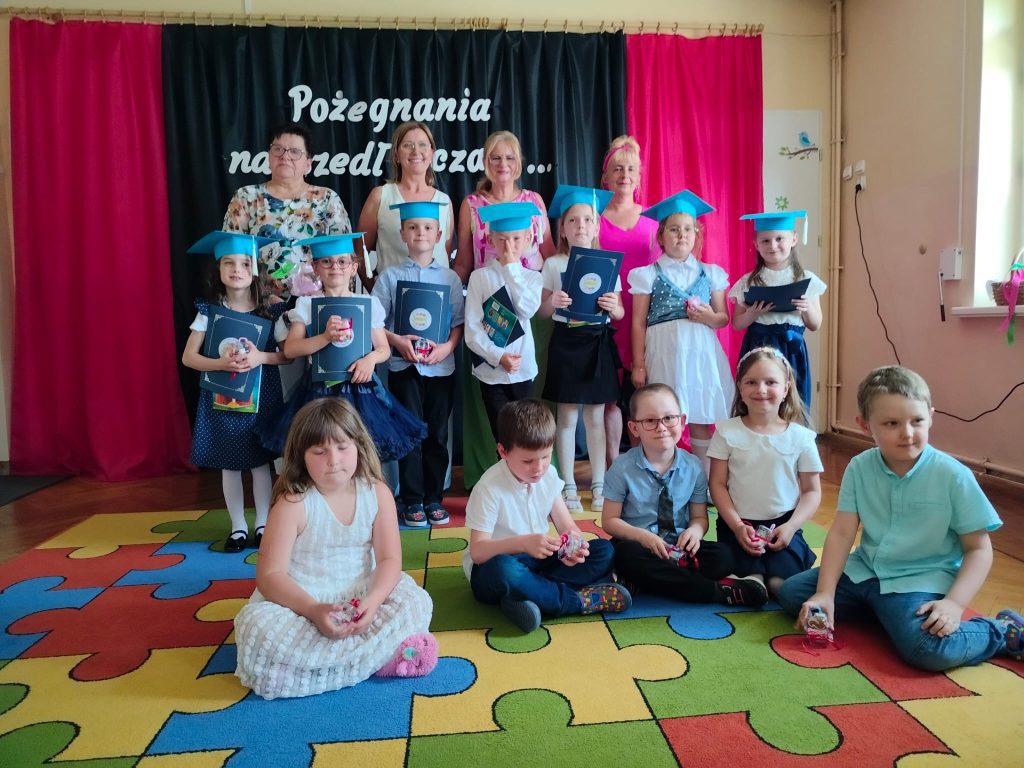 18 czerwca 2025 roku grupa Niezapominajki uroczyście pożegnała przedszkole. Był to wyjątkowy dzień —radości i pięknych wspomnień. Siedmioro naszych dzielnych przedszkolaków zakończyło swoją przedszkolną przygodę i wyrusza teraz w szkolną drogę. Wspólnie pożegnaliśmy ten ważny etap — z dumą, wdzięcznością i mnóstwem emocji. Gratulujemy naszym małym artystom pięknych występów — było „(…) dużo uśmiechów i trochę łez, bo w życiu już tak jest, coś się kończy, coś się zaczyna (…)”.