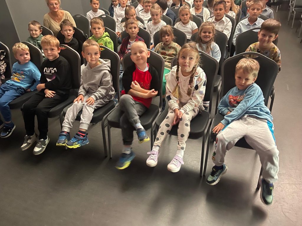 We wtorek 23.09.2025 Niezapominajki wybrały się do MOK-u na spektakl pt. ,,Pchła Szachrajka” przygotowany przez aktorów Teatru im. A. Fredry z Gniezna. Tytułowa bohaterka to drobna, lecz wyjątkowo przebiegła pchła, która nie zamierza prowadzić spokojnego życia. Wpada w liczne tarapaty wychodząc na szczęście cało z każdej opresji. Pchła mimo swej niewielkiej postury, nie boi się wyzwań. Jednak jak to w bajkach bywa w końcu okazuje się, że nie każda sztuczka wychodzi jej na dobre. Przedszkolaki bardzo żywiołowo reagowały na muzyczne akcenty spektaklu, klaszcząc do rytmu i tańcząc do muzyki.