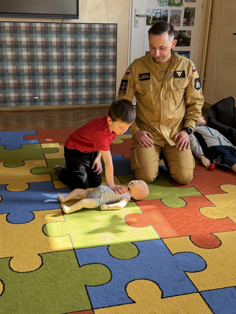 Największe emocje wzbudziła część praktyczna. Dzieci miały możliwość spróbowania swoich sił w przeprowadzeniu resuscytacji krążeniowo oddechowej. Takie doświadczenia nie tylko uczą, ale również budują pewność siebie i gotowość do niesienia pomocy innym.
