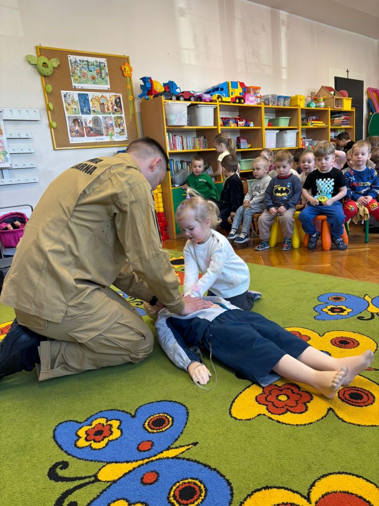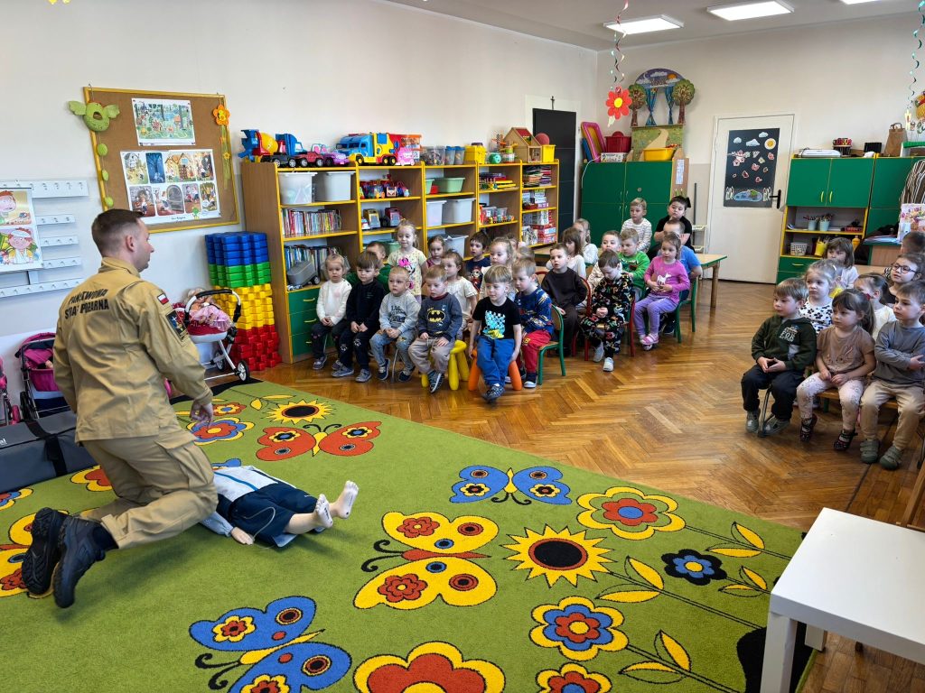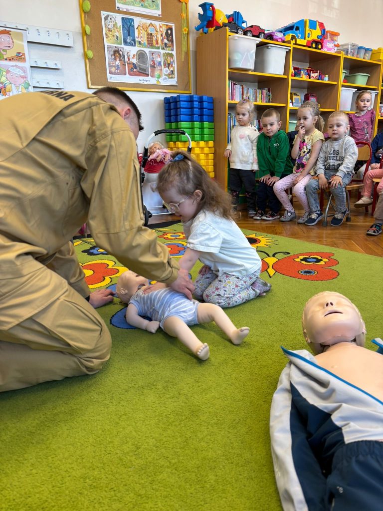 Podczas zajęć dzieci z dużym zainteresowaniem słuchały opowieści o codziennej pracy ratownika. Ratownik przypomniał dzieciom, kiedy należy wezwać pomoc oraz jak prawidłowo zachować się w nagłych sytuacjach. Prowadzący w przystępny sposób wyjaśnił podstawowe zasady pierwszej pomocy, dostosowując przekaz do wieku uczestników.