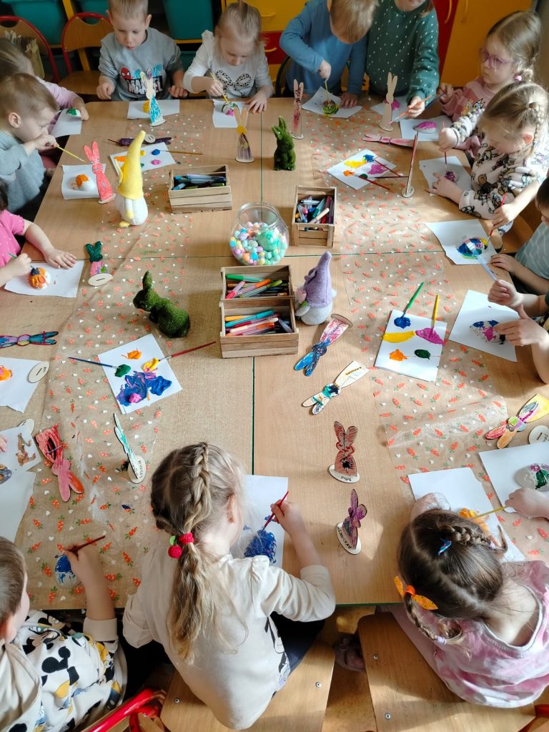 Dziś w grupie Maluchów odbyły się wyjątkowe warsztaty z jajem. Dzieci uczestniczyły w zajęciach plastyczno-technicznych oraz wesołych zabawach ruchowych związanych z tematyką spotkania. Nie zabrakło radości, śmiechu i wspólnej zabawy. Był to czas pełen ciekawych doświadczeń i aktywnego odkrywania!