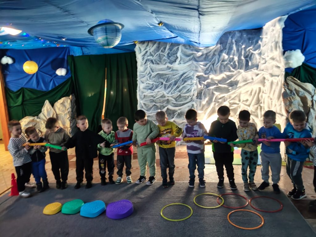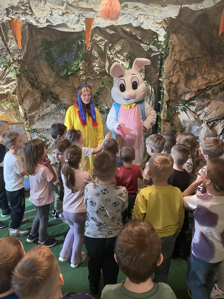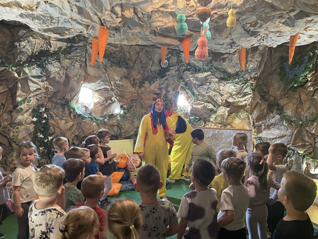 W czwartek 12 marca dzieci z grupy Stokrotki wybrały się do Łubowa, aby poszukać Zajączka. Po przejściu przez tunel świetlny, znalazły się na zajączkowej planecie pełnej nieziemskich zabaw. Pobawiły się na dmuchańcu wypełnionym kolorowymi piłkami, zatańczyły fluo – dance a w Sali Zmysłów poczuły zapach nadchodzącej wiosny. Podczas warsztatów przedszkolaki wykonały wielkanocną ozdobę, a na końcu spotkały Wielkanocnego Zajączka, który poczęstował dzieci cukierkami.