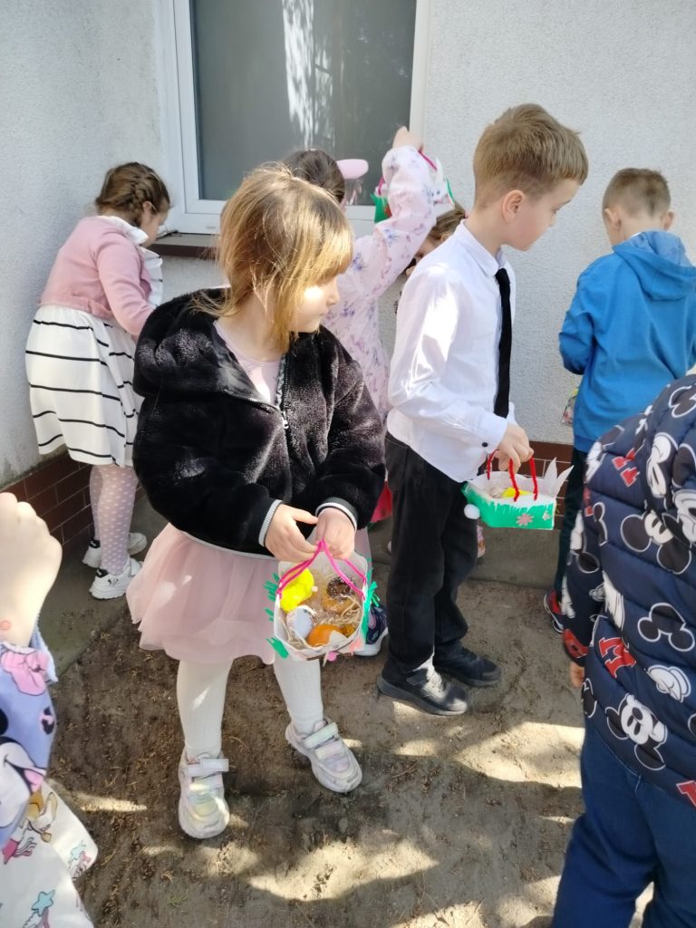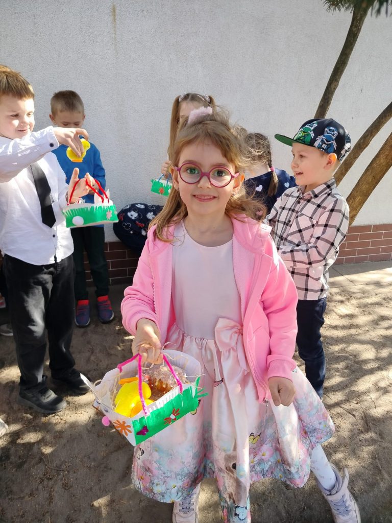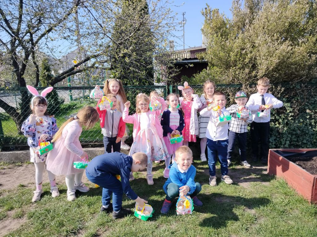 16 kwietnia w naszym przedszkolu świętowaliśmy Wielkanoc w wyjątkowy sposób! Po uroczystym śniadaniu, podczas którego zajadaliśmy pyszne świąteczne potrawy, przyszedł czas na niezwykłą przygodę. Nasze przedszkolaki z zapałem wyruszyły na poszukiwanie ukrytych koszyczków.