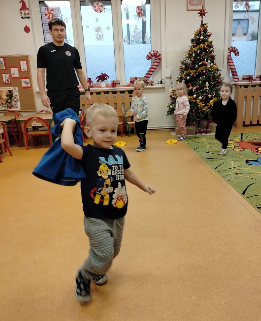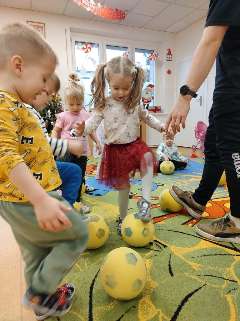 9 grudnia 2025r. odbyły się zajęcia prowadzone przez trenera Szkółki Piłkarskiej „Lampart”. Spotkanie miało na celu wprowadzenie dzieci w podstawy gry w piłkę nożną poprzez zabawę i ćwiczenia ruchowe. Trener zaprezentował proste ćwiczenia z piłką, rozwijające koordynację, równowagę i współpracę w grupie. Dzieci były bardzo zaangażowane, chętnie uczestniczyły w zabawach i reagowały na polecenia. Atmosfera zajęć była radosna i sprzyjała aktywności fizycznej.