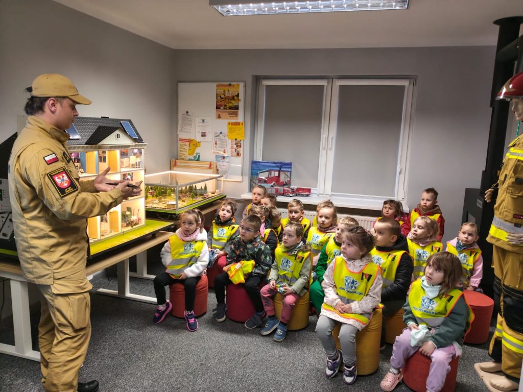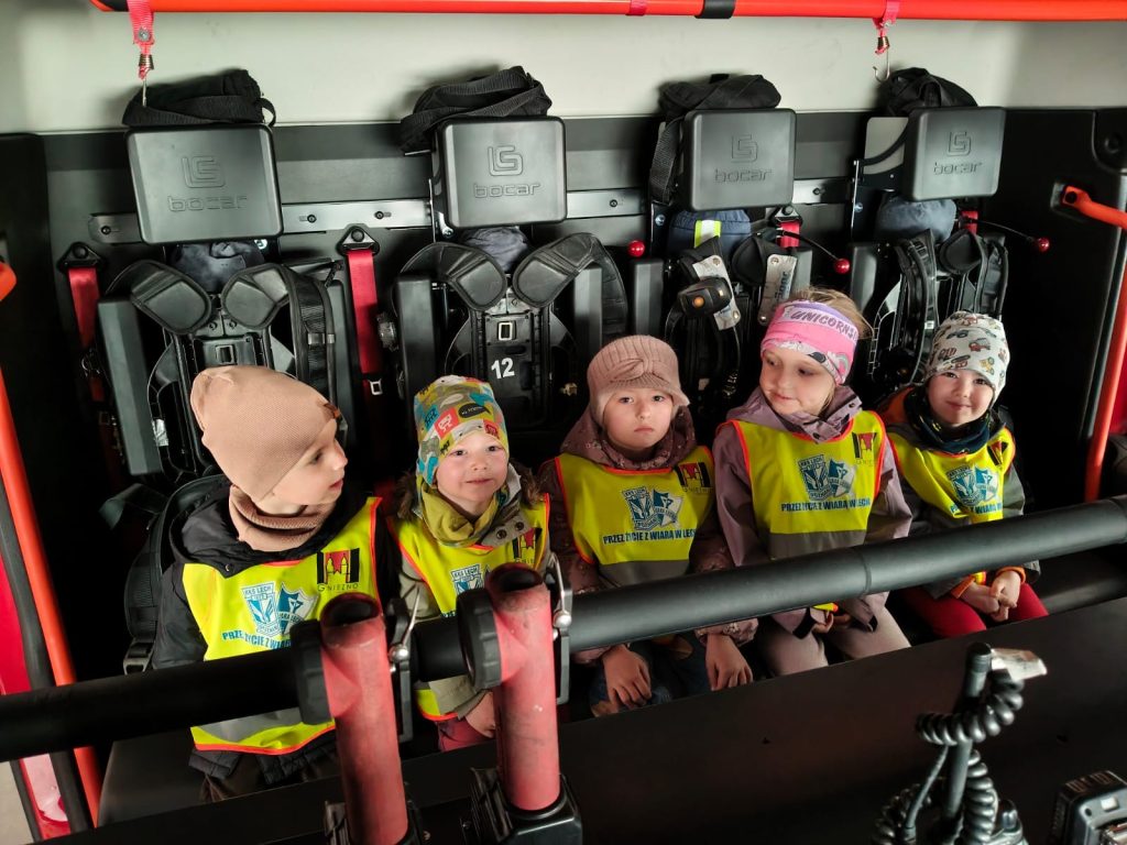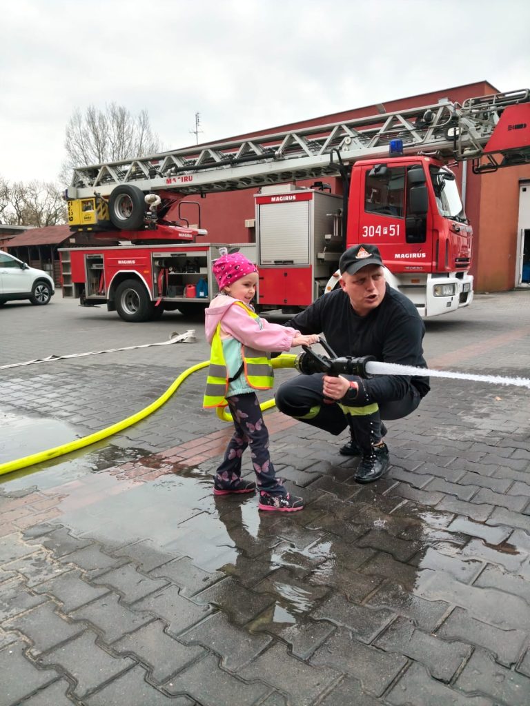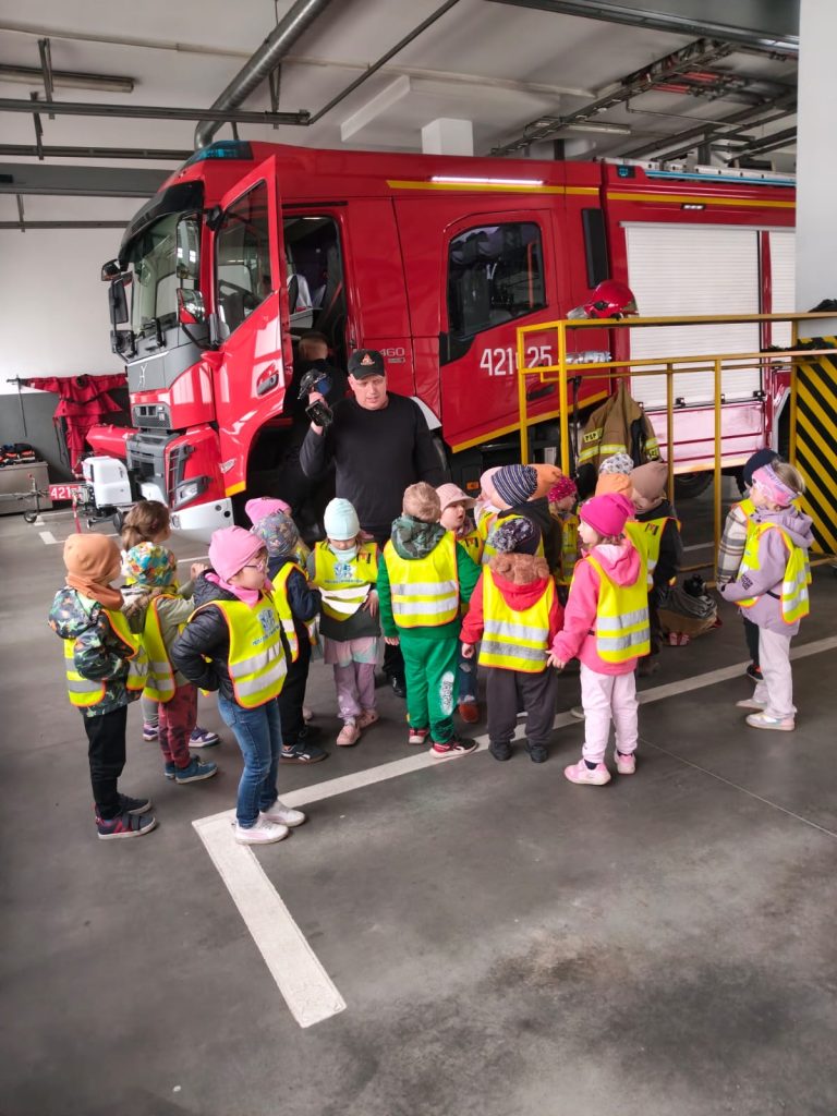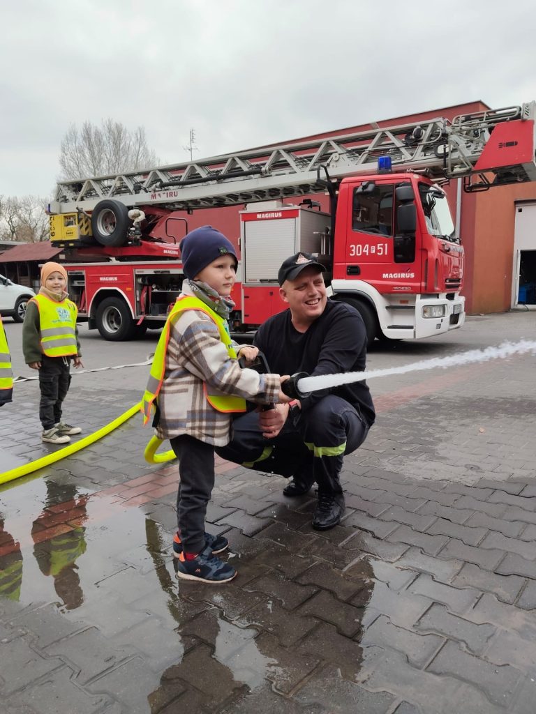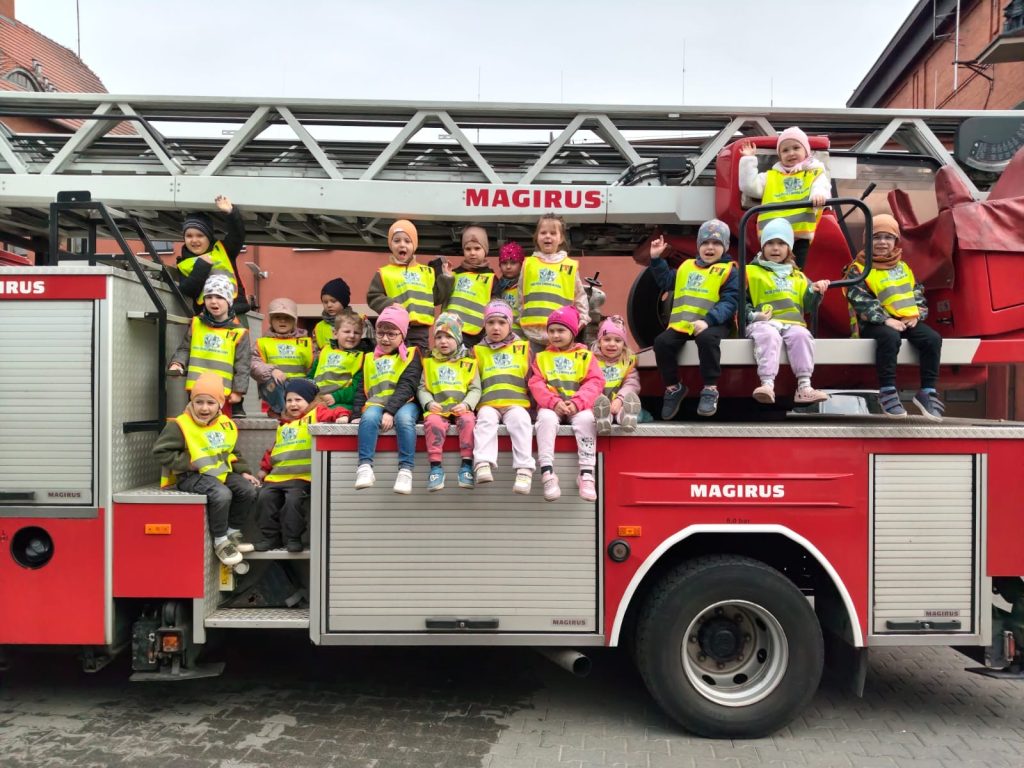 W czwartek 16 kwietnia przedszkolaki z grupy Stokrotki zwiedziły Komendę Powiatowej Straży Pożarnej w Gnieźnie. W sali ,,Ognik” widziały multimedialną makietę domu, która uczy dzieci jak unikać zagrożeń (pożar, czad) i jak zachować się w razie niebezpieczeństwa. Z bliska zobaczyły wozy strażackie, obserwowały symulowany zjazd do akcji po rurze a także miały możliwość trzymania węża strażackiego. Wizyta taka to świetna lekcja bezpieczeństwa i pokazania, że strażacy pomagają nie tylko podczas pożarów, ale także w wypadkach drogowych.