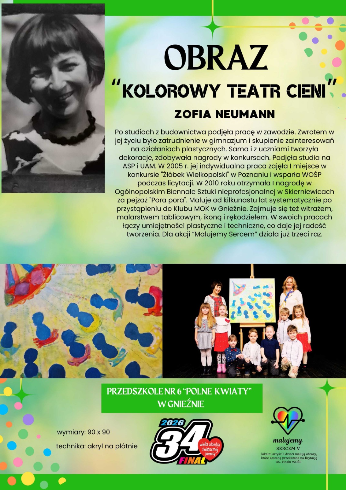 Kochani rodzice nasze przedszkolaki razem z lokalną artystką Panią Zofią Neumann malowały obraz na licytację WOŚP!